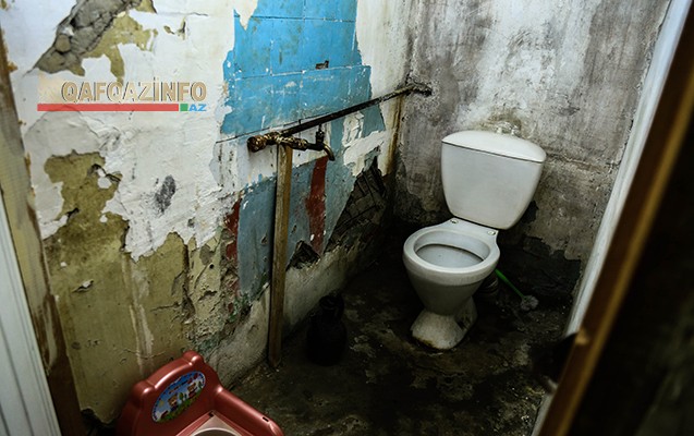 Sakinlərin sözlərinə görə, artıq əsrlik yaşını adlayan bina əvvəllər kazarma olub. Ona görə də, mənzillərdə hamam, tualet yoxdur: “Birinci mərtəbədəkilər yenə qabağa artırma edib tualet tikə biliblər. Yuxarıdakılar əllərində salafanla dolaşır. Belə olduğu halda məlum məsələdir ki, kanalizasiya sisteminin də nə olduğunu bimirik. Evlərin arakəsmələri taxtadandır, divara əl vursan, o yana gedəcək. Bu gün "remont" edirsən, sabah baxırsan ki, qol boyda çatlar var. Nə qədər pul tökəsən axı? Heç bir işə yaramır. FHN-dən gələnlər də deyiblər ki, burada yaşayış mümkün deyil. Vallah, biz qəhrəman insanlarıq ki, burada yaşaya bilirik”.