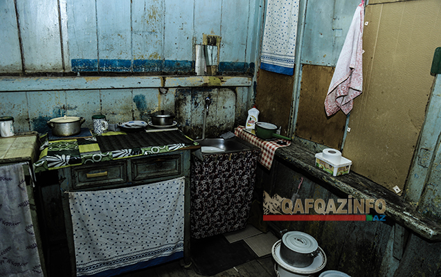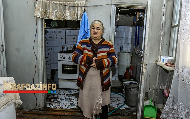 “Bax, qızım, burada xörək bişirirəm. Neçə dəfə tavana görə usta çağırmışam. O da deyib ki, burda nəsə iş görəndə başına kaska qoy. Pol çürüyür deyə üstünə dik vurdurmuşam, bütün divarlara da lambir. Özünüz görürsüz, mən artıq nə danışım? Hələ bura yaxşıdır. Gəlin, sizə qohumumuzun evini göstərim. Onlar yaşaya bilməyib başqa yerdə qalırlar, açarları məndədir. Bütün barılar tökülür, pol çürüyüb, tavanı da özünüz görürsüz”.