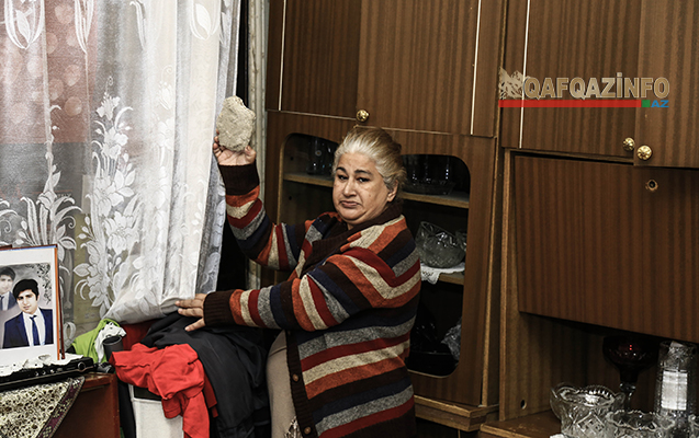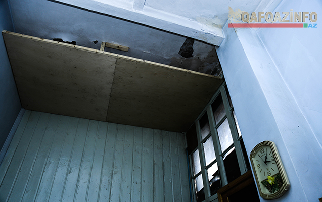 Biz də Nailə xanımın qapısını döydük. Əvvəlcə yerindən qalxa bilməsə də, jurnalist olduğumuzu eşidib birtəhər qapını açdı. Onun sözlərinə görə, neçə dəfə müalicə olunsa da, xeyri yoxdur: “Sonuncu dəfə həkim deyib ki, o rütubətli evdən çıxmamış mənim yanıma gəlmə. Onsuz müalicənin bir xeyri olmayacaq. Tavanla divarla arasında azı bir qarışlıq məsafə var. Gündə bu daşlardan biri başımıza düşür. Oğlum da əsgərlikdədir. Mən onun üçün narahat olacağım yerdə, o məndən nigarandır. Dünən də zəng edib ki, ana necəsən? Nə cavab verə bilərəm axı?! Artıq şikayət etmədiyimiz yer qalmayıb. İndi gözləyin deyirlər, biz də gözləyirik. Ramanadan sonra tikiləcək bina bizim bina imiş”.
