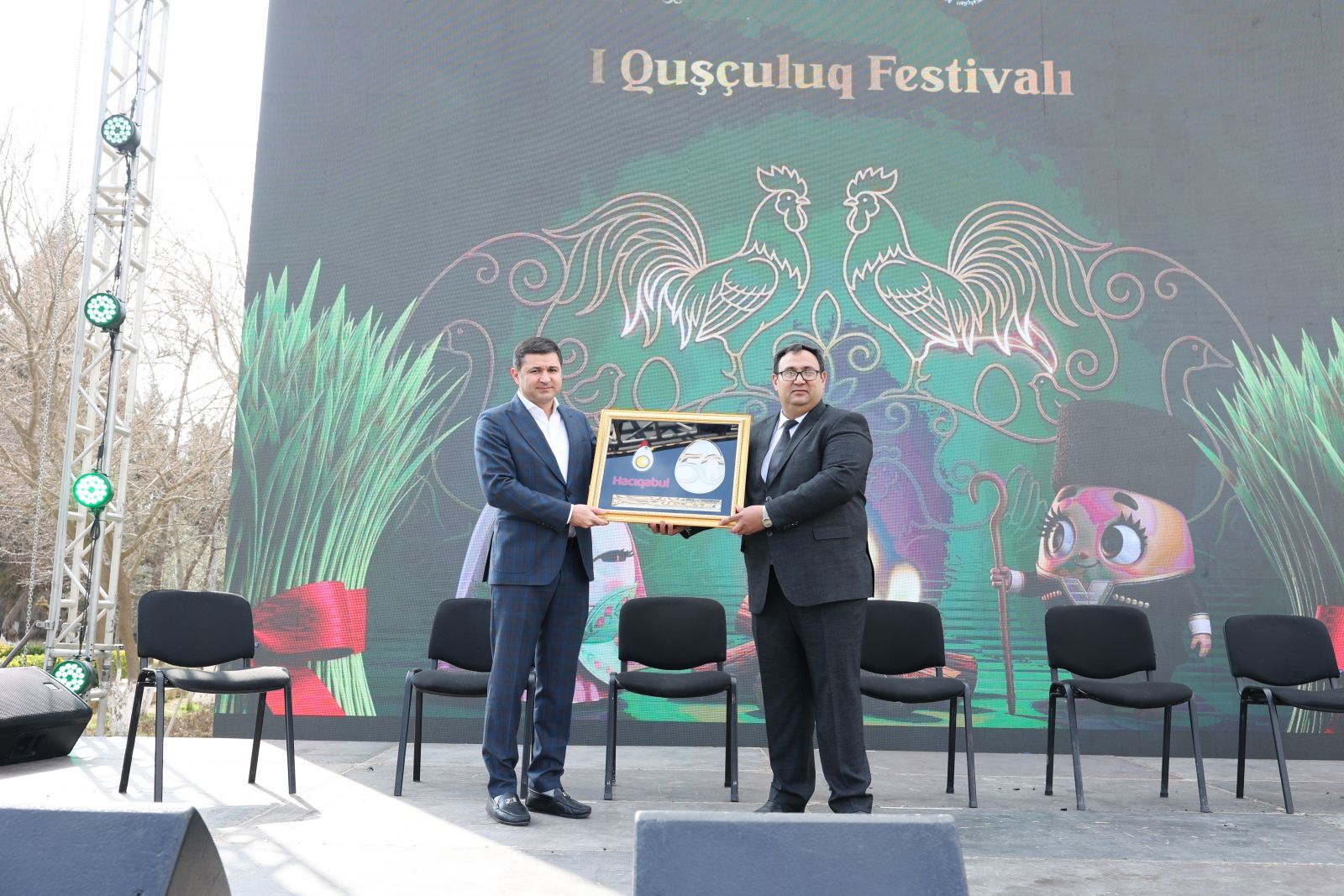 Sonra çıxış edən Milli Məclisin vitse-spikeri Rafael Hüseynov festivalın ərsəyə gəlməsində iştirak edən hər kəsə minnətdarlığını ifadə edib. Bildirib ki, Hacıqabul rayonunda fəaliyyət göstərən "Hacıqabul Quşçuluq Şirkəti" bu il 50 illik yubileyini qeyd edir. Məhz bu festivalın keçirilməsinin tarixi əsası var. Bugünü bayram edən digər şərt ondan ibarətdir ki, 1976-cı ildə Hacıqabul torpağında quşçuluq fabrikinin əsası qoyuldu. Bu fabrikin yaradıcısı Adışirin Babaşovu çox minnətdar duyğularla anırıq. Ulu Öndərin hakimiyyətə qayıdışı nəticəsində fabrikin daha yüksəlişləri baş vermişdir. Hazırda fabrik tam gücü ilə öz fəaliyyətini davam etdirir. Yumurta istehsalı sahəsində Hacıqabul rayonu ölkə üzrə ən qabaqcıq yeri tutur.