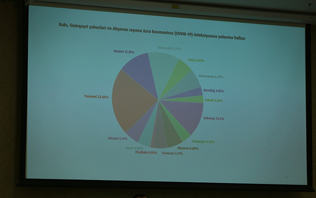 Paytaxt rayonlarına nəzər saldıqda isə, koronavirusa yoluxma halı ən çox Yasamal rayonunda, (22.65 faiz) ən az isə Pirallahıda (0.93 faiz) qeydə alınıb. Bundan başqa, Binəqədidə 11,27%, Nəsimidə 11,15%, Nərimanovda 6,27%, Xətaidə 5,37%, Səbaildə 2,25%, Nizamidə 5,11%, Xəzərdə 4,53%, Suraxanıda 5,11%, Qaradağda 3,02% və son olaraq Sabunçuda 12,2% yoluxma faktı qeydə alınıb.