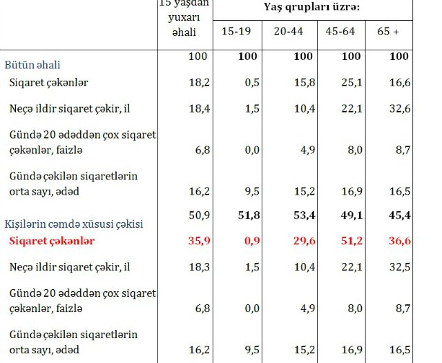 Statistika Komitəsinin hesabatı da maraq doğurur. Komitənin rəsmisi Yaşar Əliyev açıqlamasında: “bu sorğunun obyektiv olmadığını” etiraf etdi. O dedi ki, sorğu ailə üzvlərinin bir yerdə olduğu zaman alınıb. Heç bir övlad, atasının heç bir qadın isə həyat yoldaşının qarşısında siqaret çəkdiyini etiraf etməz. “Ona görə də statistikada bu faizlərlə rastlaşsaz təəccüblənməyin.”-Yaşar Əliyev belə deyib.