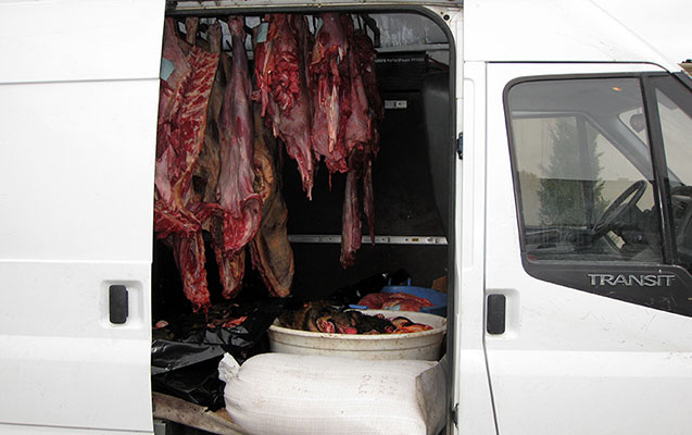 Mayın 3-də DİN Baş Mütəşəkkil Cinayətkarlıqla Mübarizə İdarəsinə Xaçmaz rayonunda mənşəyi məlum olmayan ətin satılması barədə əməliyyat məlumatı daxil olub. Keçirilən tədbirlər nəticəsində rayon sakini Namiq Ağayev 1 ton mənşəyi məlum olmayan əti satmaq istəyən zaman saxlanılıb. Araşdırmalarla məlum olub ki, saxlanılan şəxs Xaçmaz və ətraf rayonlardan əldə etdiyi xəstə və ölü heyvanların ətinin Bakı şəhərində satışını təşkil etmək istəyib. Ekspert rəyi ilə müəyyən edilib ki, aşkarlanan ət istifadəyə tam yararsızdır və insan sağlamlığına ciddi təhlükə yarada bilər. Qeyd edilən faktlarla bağlı Baş İdarənin İstintaq Şöbəsində cinayət işi başlanıb. Araşdırmalar davam etdirilir.