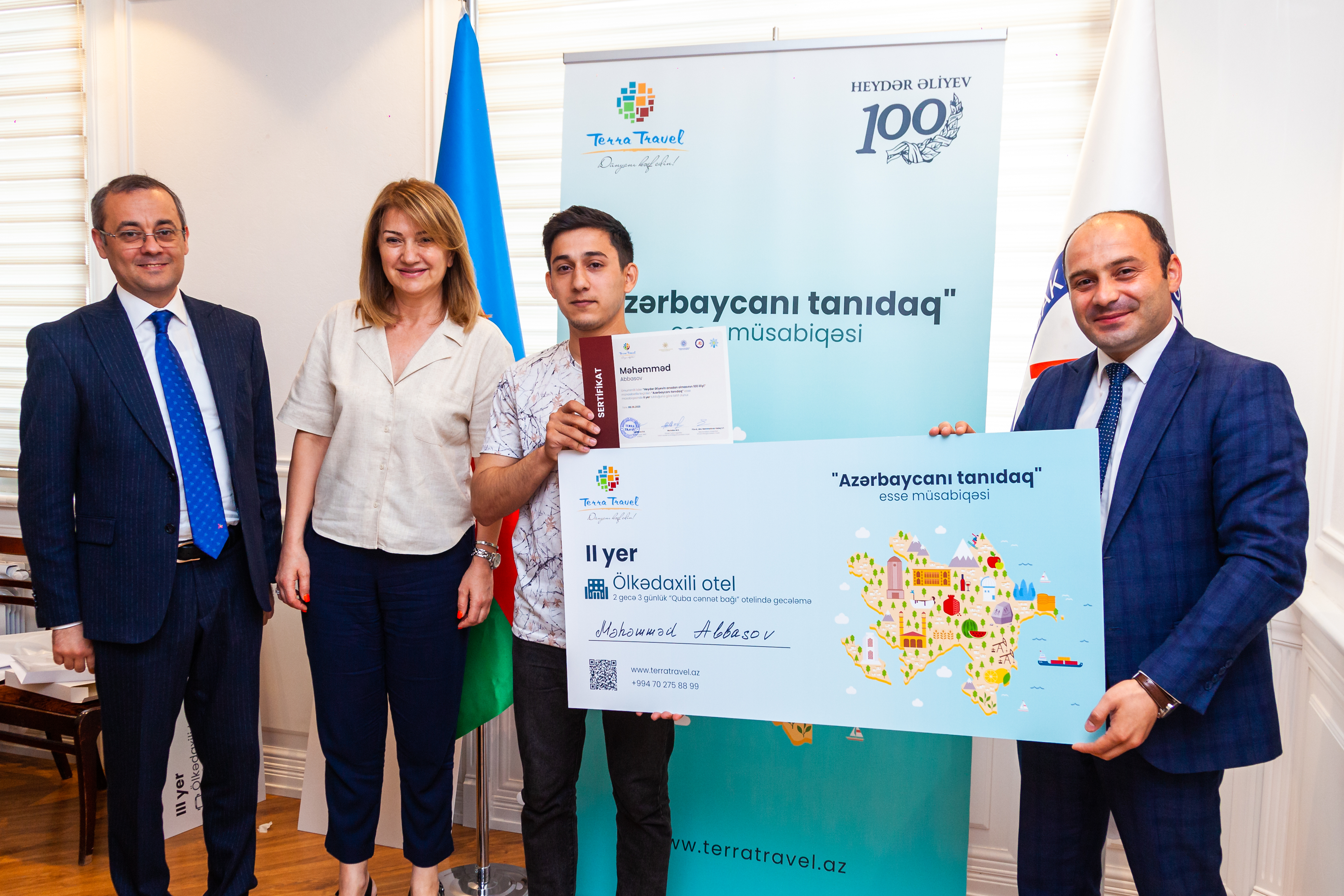 Daha sonra müsabiqə komissiyasının üzvlərinə “Terra Travel” şirkəti tərəfindən təşəkkürnamələr və esse müsabiqəsinin iştirakçılarına sertifikatlar təqdim edilib.