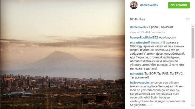 4. "Like müharibəsi". Rusiyanın baş naziri Dmitri Medvedyevin İnstagram səhifəsində münaqişə ilə bağlı səfər etdiyi Yerevan və Bakıdan paylaşdığı fotolar sosial şəbəkələrdə ciddi "bəyənmə davasına" çevrilib.