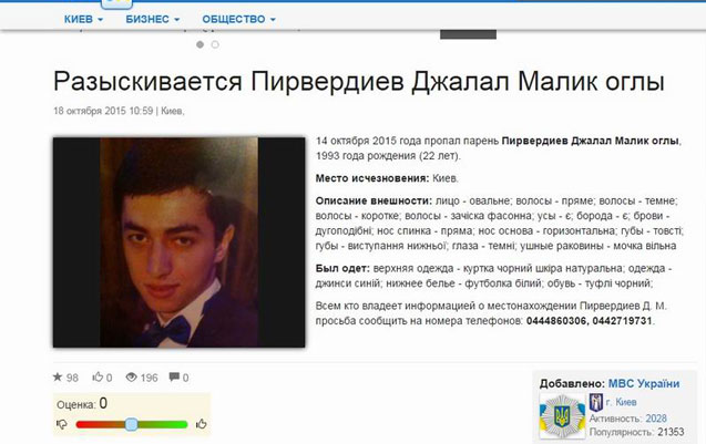 Qeyd edim ki, oğlum Ukrayna Azərbaycanlı Gənclər Birliyinin Donetsk Vilayət təşkilatının sədri Pirverdiyev Cəlal oktyabrın 13-dən 14-ə keçən gecə Kiyevdə müəmmalı şəkildə naməlum şəxslər tərəfindən oğurlanıb. Bununla bağlı artıq Ukraynanın hüquq-mühafizə orqanlarına müraciət edilib. Hazırda hadisə ilə bağlı araşdırma aparılır.