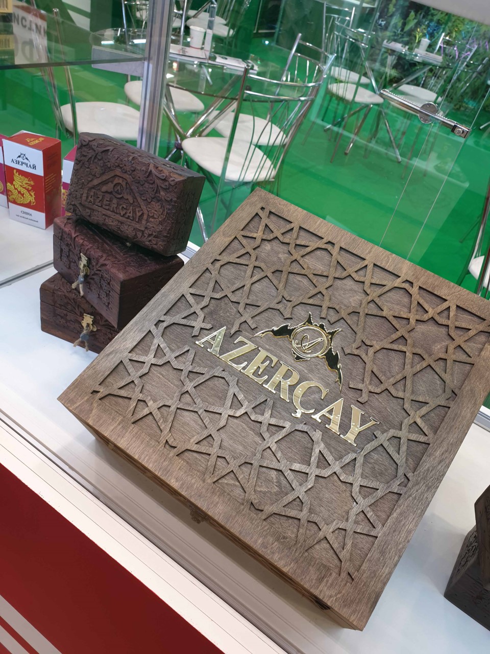 “Made in Azerbaijan” yazısını üzərində daşıyaraq ölkəmizi dünyanın müxtəlif ölkələrində layiqincə təmsil edən adıçəkilən milli markamız sərginin ən böyük stendlərindən birinə sahib olub. Rusiya bazarında böyük rəğbətlə qarşılanan “Azerçay” bütün MDB məkanında on illərdir ki, geniş auditoriyaya malik TV verilişlərə dəstək olur, ölkəmizdə və dünyanın müxtəlif yerlərində təşkil edilən beynəlxalq tədbirlərdə yaxından iştirak edir.