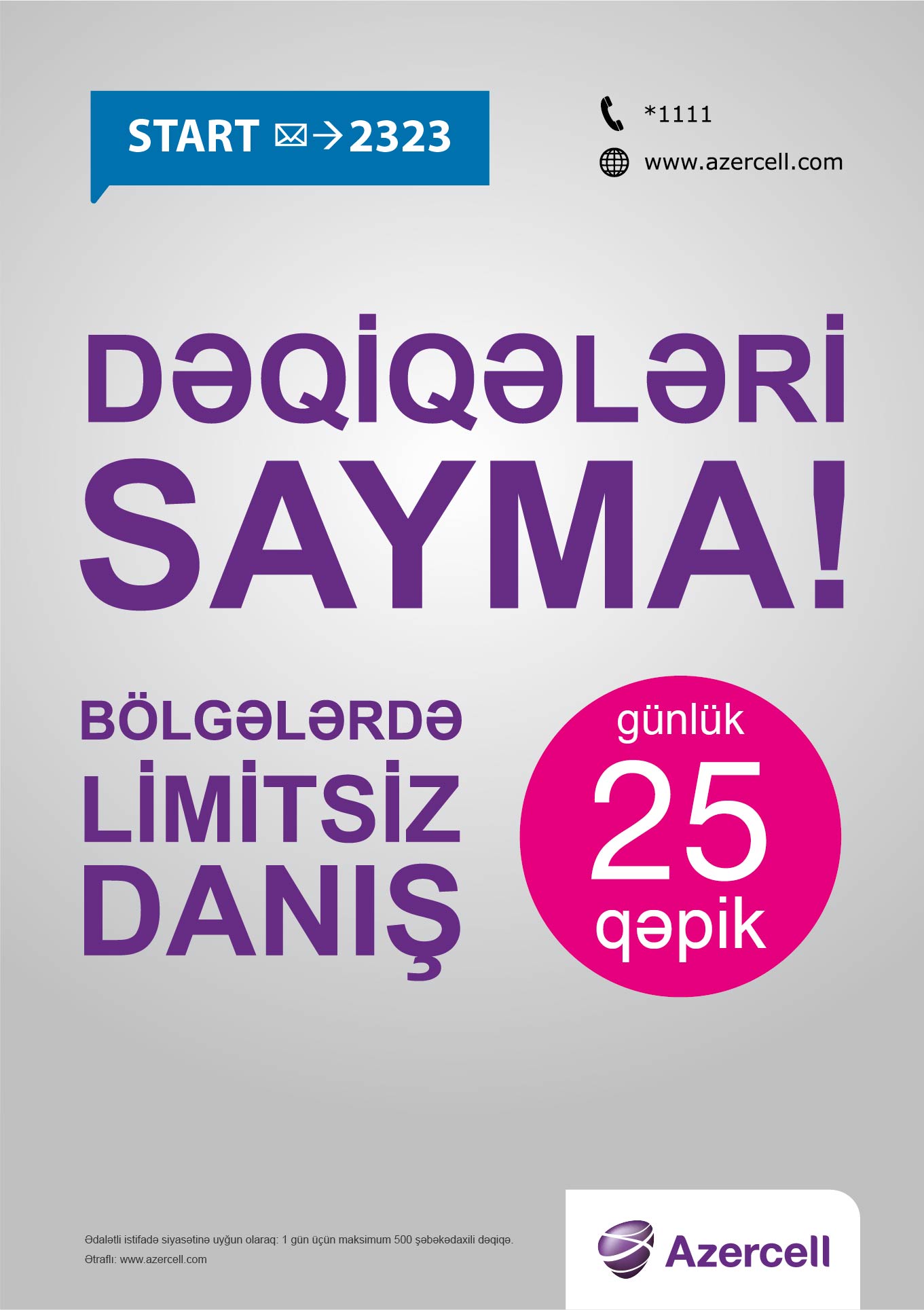 Yay mövsümünün başlaması ilə ölkənin lider mobil operatoru Azercell Telekom bölgələrdə yaşayan abunəçiləri üçün yeni və sərfəli kampaniyaya başladı. “Bölgələrdə limitsiz danış” kampaniyası ilə indi SimSim abunəçiləri bölgələrdə günlük limitsiz danışıq paketini əldə edə bilərlər, özü də, cəmi gündəlik olaraq 0.25 AZN müqabilində. Azercell-in “Bölgə” tarifinə qoşulmuş abunəçilərinə təqdim etdiyi bu sərfəli kampaniyadan yararlanmaq üçün sadəcə 2323 nömrəsinə START SMS-ni göndərmək lazımdır. Günlük limitsiz danışıq paketi sifariş olunan günün sonuna qədər istifadə edilə bilər. Qeyd edək ki, kampaniya yalnız Azərbaycanın rayonlarında keçərlidi. Bakı və Abşeron yarımadası ərazisində edilən zənglər kampaniyaya daxil deyil.