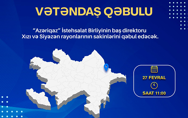 Görüş zamanı Xızı və Siyəzən rayonlarından olan sakinlərin müraciətləri dinləniləcək.