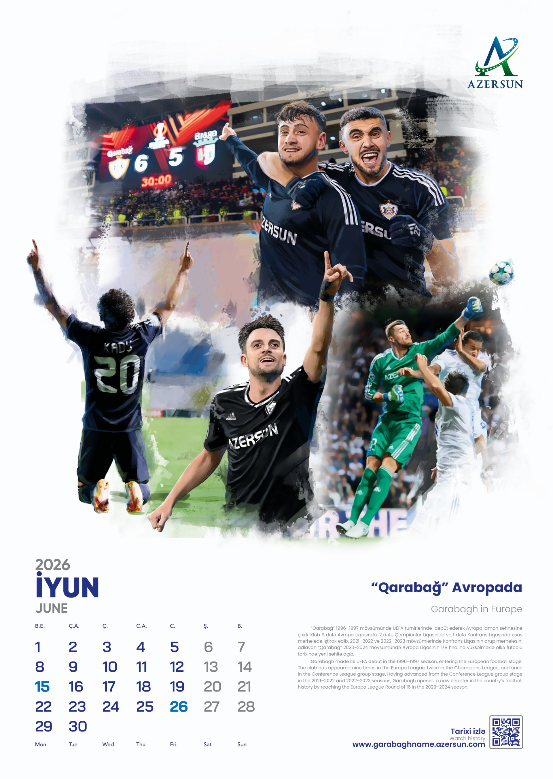 “Azərsun Holdinq” ənənəsinə sadiq qalaraq növbəti illik təqvimini çap etdirib. 2026-cı il üçün hazırlanan bu təqvim son illərdə futbol sahəsində qızıl dövrünü yaşayan “Qarabağ” futbol klubuna həsr olunub.