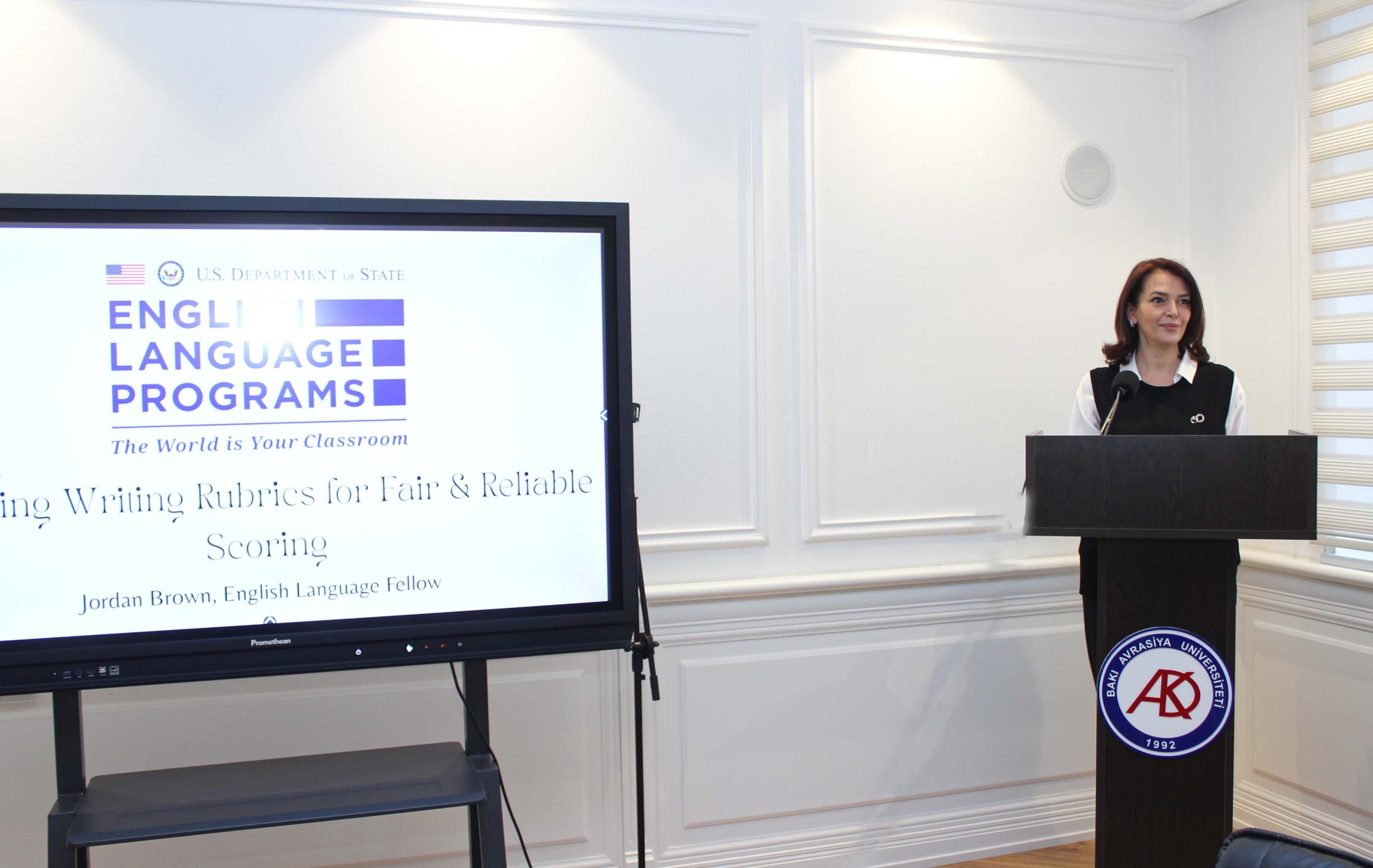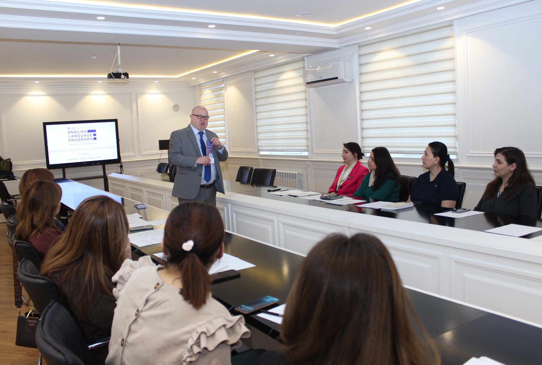 Görüşdən sonra ABŞ Dövlət Departamenti tərəfindən həyata keçirilən “English Language Fellow – ELF” proqramı çərçivəsində fəaliyyət göstərən Cordan Braun yazı qiymətləndirmə meyarlarının (rubriklərinin) uyğunlaşdırılması, eləcə də ədalətli və etibarlı qiymətləndirmənin təmin edilməsi mövzusunda peşəkar inkişaf təlimi keçib. Təlim zamanı tələbəyönümlü və praktik strategiyalar təqdim olunub, yazı qiymətləndirməsində effektivliyin artırılması üzrə tövsiyələr verilib.