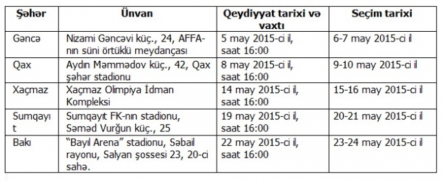 Seçim prosesinin təqvimi aşağıda qeyd olunub: