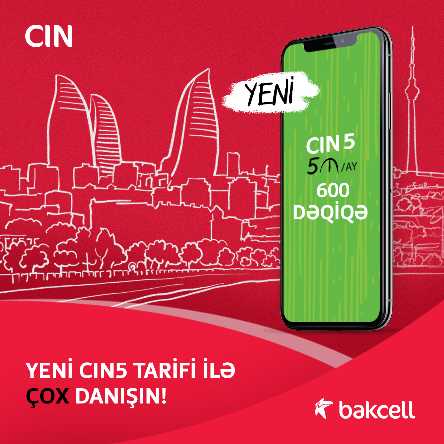Azərbaycanın İlk Mobil Operatoru və Aparıcı Mobil İnternet Provayderi Bakcell şirkəti böyük məmnuniyyətlə abunəçilərinə sərfəli qiymətə daha ÇOX danişmaq imkanı verən tam yeni CİN1 və CİN5 tariflərini təqdim edib.