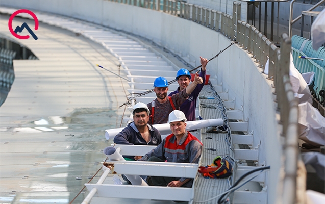 İlk gördüyümüz mənzərə isə müasir texnologiyalarla bağlı idi. Ot örtüyünün yanmaması üçün ultrabənövşəyi şüalar yaradan qurğular artıq meydançada qurulub. Həm AL finalı, həm AÇ-2020-nin 4 oyununa hazırlaşan ölkəmizin ən böyük arenası istifadəyə tamamilə hazırdır.