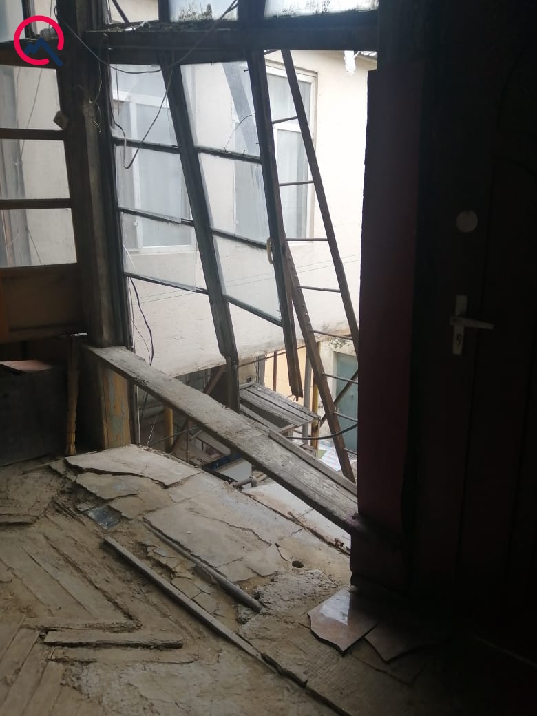 Onun sözlərinə görə, 2 mərtəbəli bina 1890-cı illərdə inşa edilib. O vaxtdan bir neçə dəfə təmir olunsa da, istismar müddəti başa çatıb: “130 ilin binası necə olar? Bakıda 50-60-cı illərin binalarını köhnə olduğuna görə sökürlər, amma bizim binaya baxan yoxdur. Yağış yağanda başımıza tökülür, evdə hərəkət etmək belə təhlükəlidir. 16-17 ailə bu vəziyyətdə yaşayır. Qəzalı binada bir gün ölüm halının olması qaçılmazdır. Aidiyyəti qurumlar gözləyirlər ki, ölüm olsun, sonra bizim işimizə əncam çəksinlər”.