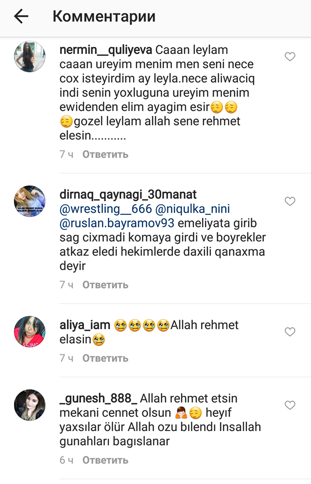 Məlumata görə, əməliyyatdan iki gün sonra - 25 iyun tarixində isə gənc qız vəfat edib. Ölümün hansı səbəbdən baş verdiyi bəlli olmasa da, müxtəlif versiyalar səslənir.