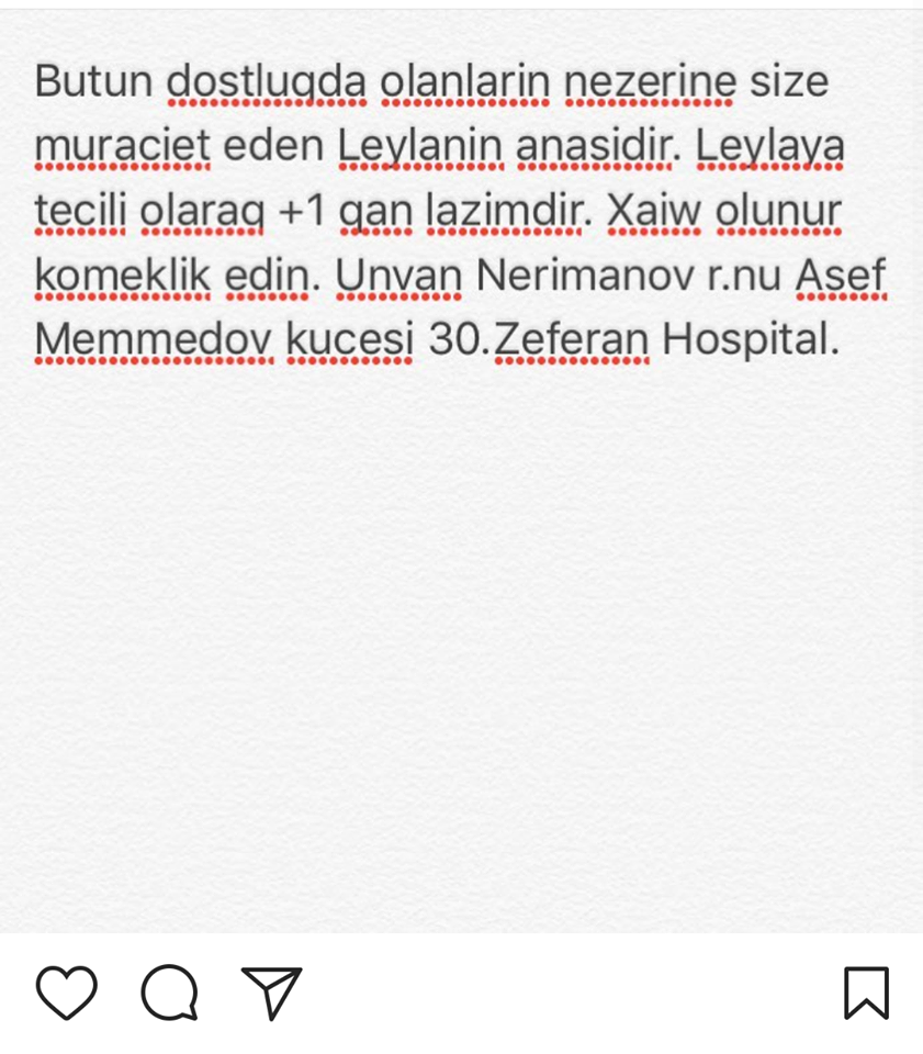 "Zəfəran Hospital"da əməliyyat olunan Leyla adlı 22 yaşlı qız 2 gün sonra vəfat edib.