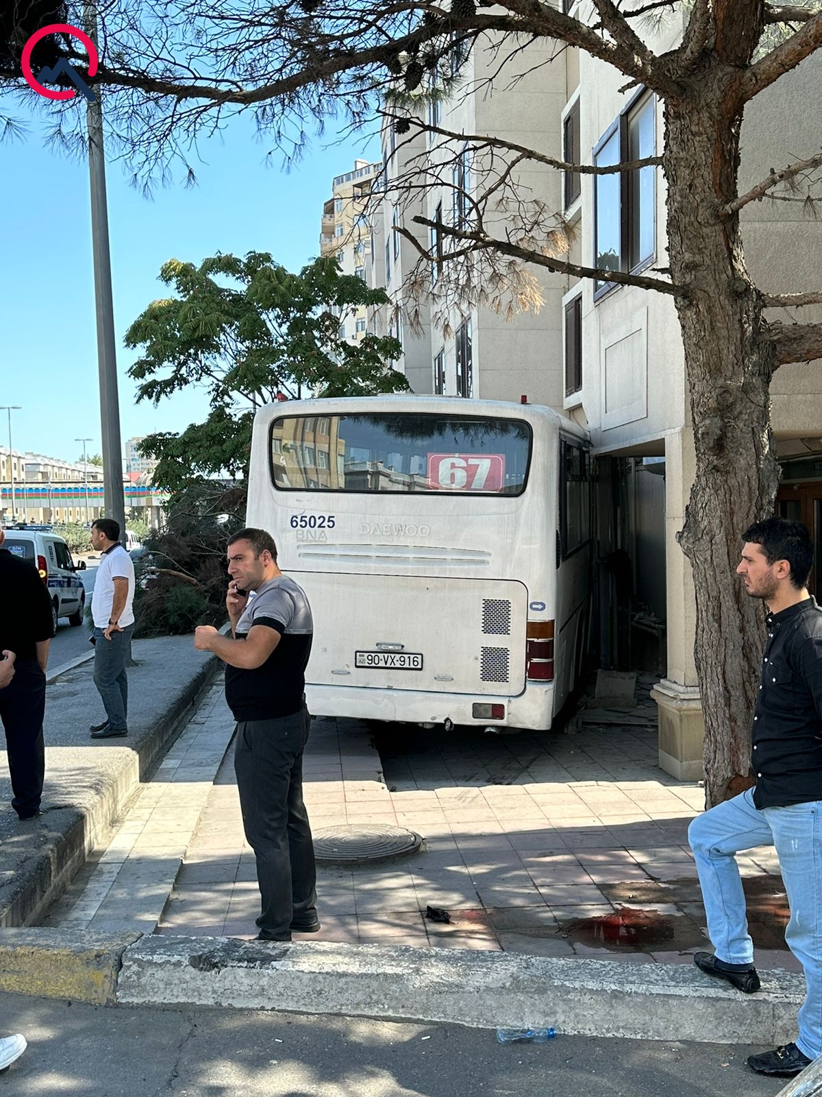 Belə ki, 67 saylı müntəzəm marşrut xətti üzrə hərəkət edən “Daewoo” markalı avtobus prospektin köməkçi yolunda “Mercedes” markalı minik avtomobili ilə toqquşub. Avtobus daha sonra piyada səkisinə və yolun sağındakı yaşıllıq sahəsinə çıxraraq ağacları sındırıb.
