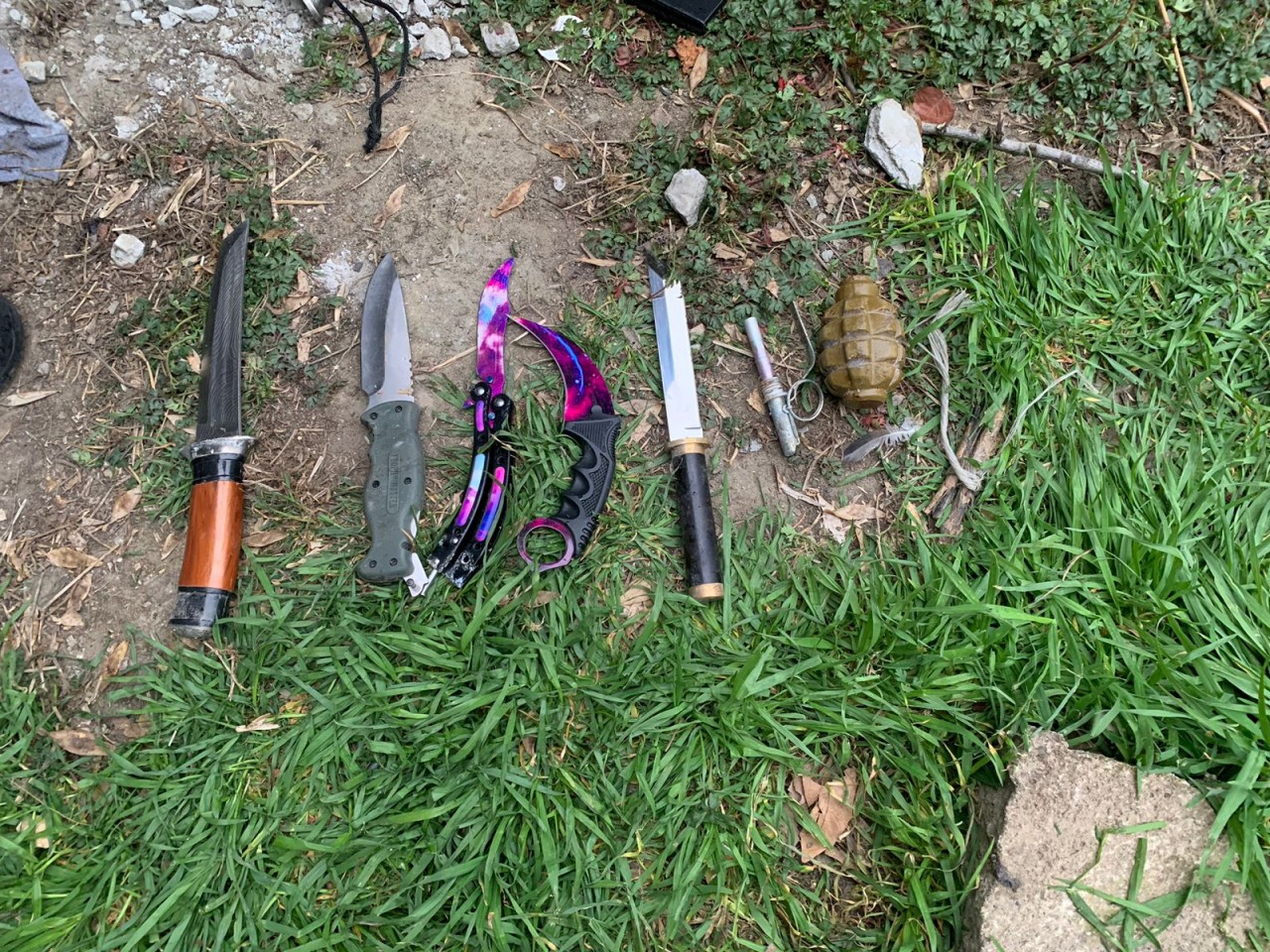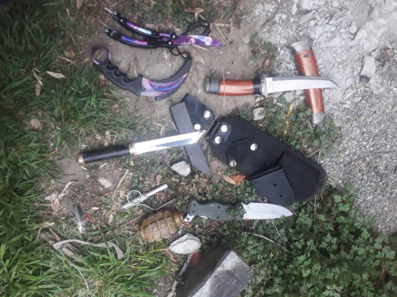 Hüquq-mühafizə orqanı əməkdaşları ilə birgə ərazidə müvafiq təhlükəsizlik tədbirləri görüldükdən sonra hadisə yerinə baxış zamanı aşkar edilmiş sursatın döyüş tətbiqinə yararlı 1 ədəd F-1 əl qumbarası və soyuq silah qismində 5 ədəd bıçaq olduğu müəyyən edilib.