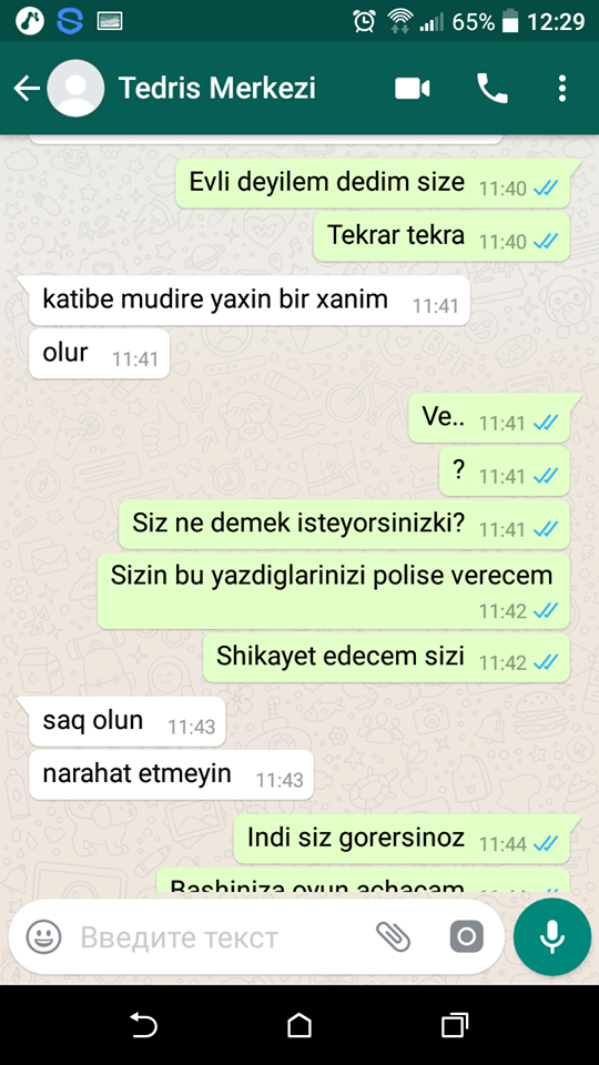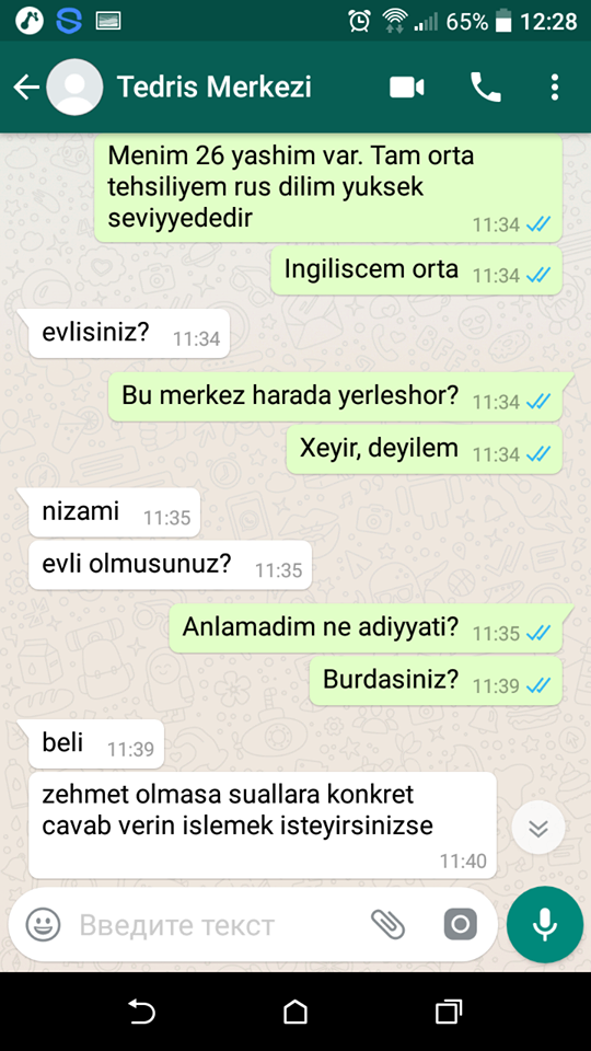 Watsappa yazarkən yalnız ətraflı məlumat yazın özünüz haqqda.
