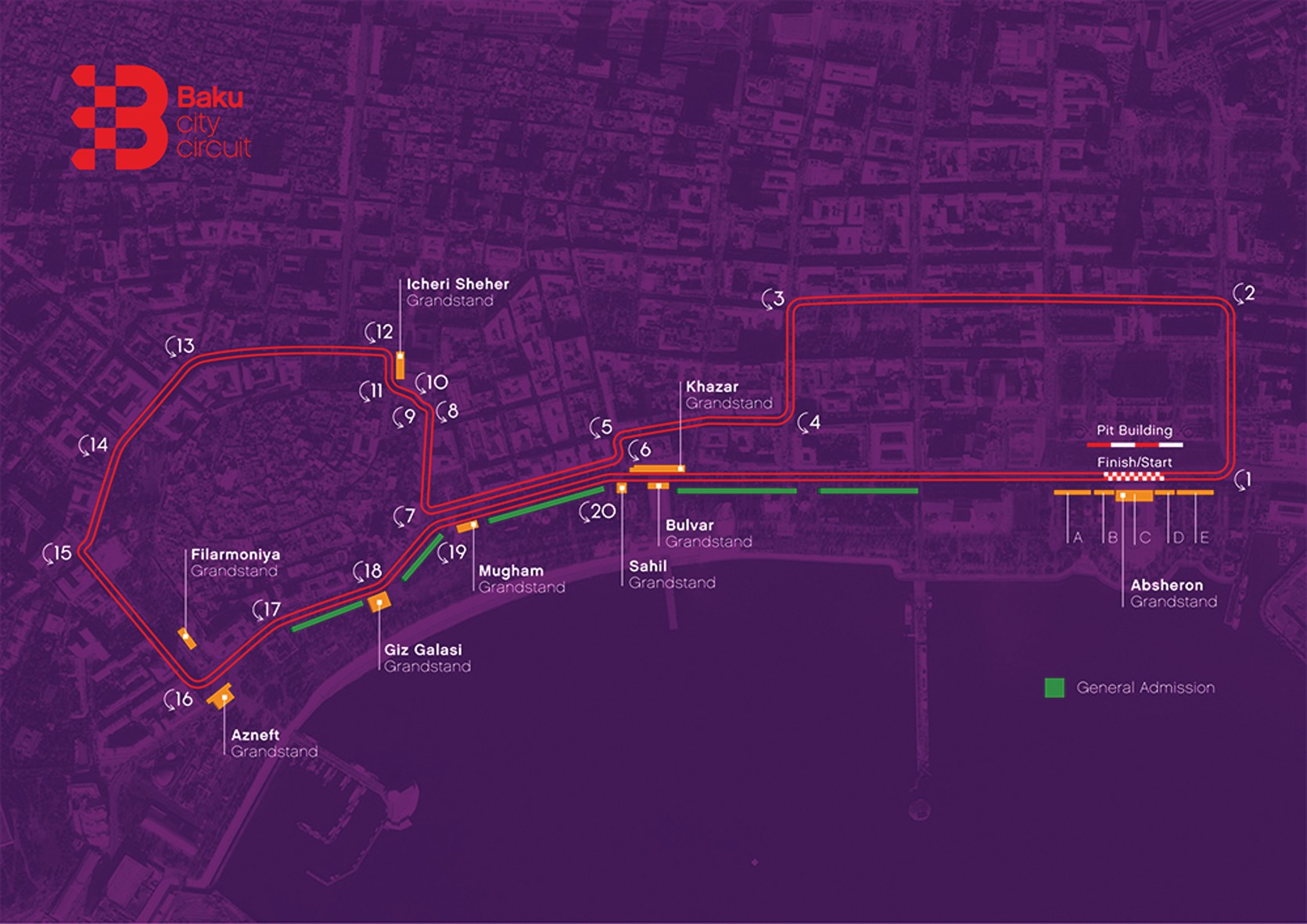 6 kilometrdən bir qədər artıq olan Bakı Şəhər Halqası trekin uzunluğuna görə dünyada ikincidir. Unikal xüsusiyyətlərə sahib Bakı Şəhər Halqası elə təşkil olunub ki, yarış zamanı “Formula-1” iştirakçıları və azarkeşləri UNESCO-nun Ümumdünya İrsi Siyahısına daxil olan İçərişəhər Tarixi-Memarlıq Qoruğunu, şəhərin müasir göydələnlərini və Xəzərin sahil boyu hissəsini özündə birləşdirən Bakının simasını görəcəklər. Trekdə yarış avtomobillərinin hərəkəti saat əqrəbinin əks istiqamətində olacaq.