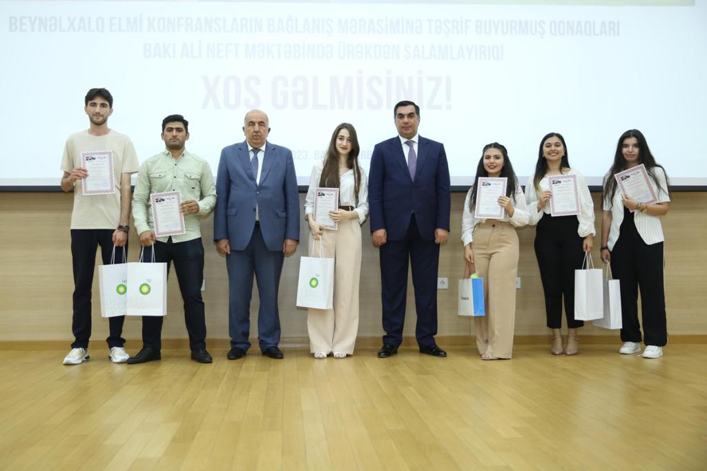 SOCAR-ın Bakı Ali Neft Məktəbində (BANM) ümummilli lider Heydər Əliyevin 100 illik yubileyinə həsr olunmuş Tələbə və Gənc Tədqiqatçıların IV Beynəlxalq Elmi Konfranslarının bağlanışı və qaliblərin mükafatlandırılması mərasimi keçirilib.