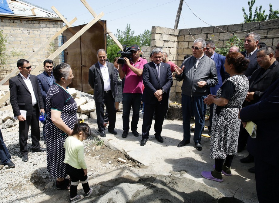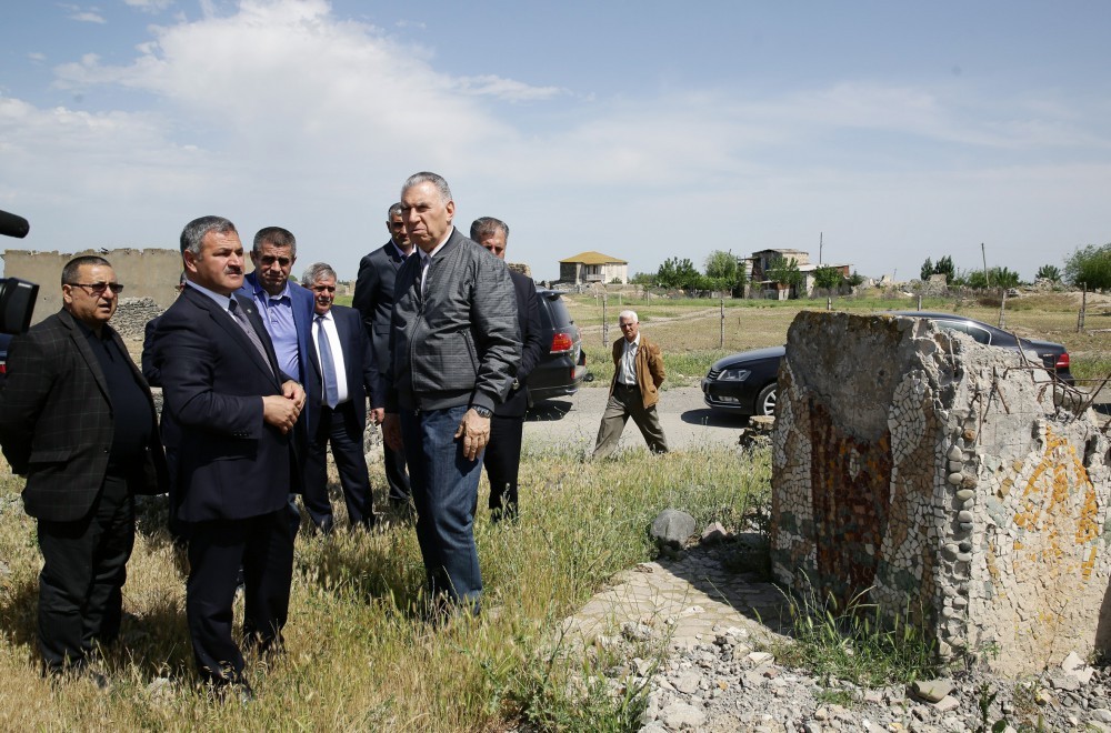 Əli Həsənov Ağdam və Tərtər rayonlarına gələrək apreldə işğalçı Ermənistan ordusu tərəfindən iriçaplı silahlar və artilleriya qurğularından açılmış atəş nəticəsində dağılmış evlərə baxıb.