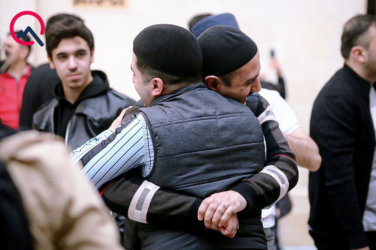 Bayram namazına toplaşanlar bir-birlərini təbrik edib, sevinclərini bölüşüblər.