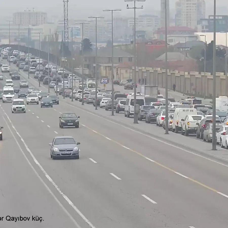 Bakının bir sıra yollarında nəqliyyatın hərəkətində tıxac yaranıb.