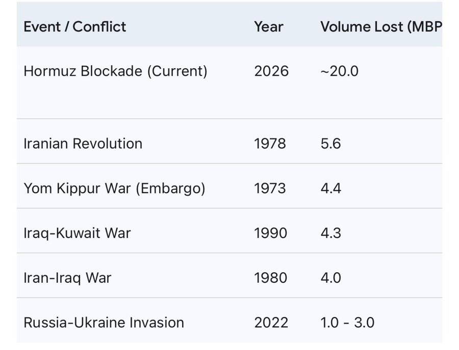 İran tərəfinin təqdim etdiyi rəqəmlərə görə, Hörmüz boğazındakı mövcud blokadanın həcmi Rusiya-Ukrayna müharibəsi zamanı baş verən itkinin (1.0-3.0 MBP) təxminən on qatına çatıb.