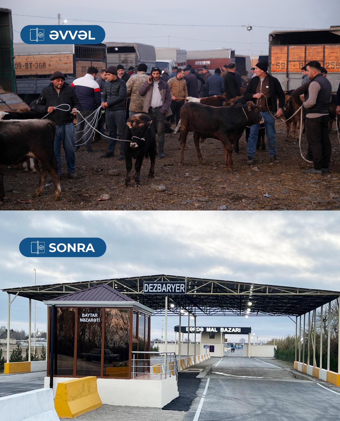 Bazarın girişində baytarlıq nəzarəti məntəqəsi tikilib, dezbaryer quraşdırılıb. Bundan başqa, heyvanlara baxış platformaları inşa edilib. Çardaqlar və satış pavilyonları qurulub. Ərazidə asfaltlama və betonlama işləri görülüb. Heyvan rifahı üçün su və yemlə təminat yaxşılaşdırılıb. Tullantıların daşınması və digər tələblərə uyğun şərait yaradılıb.