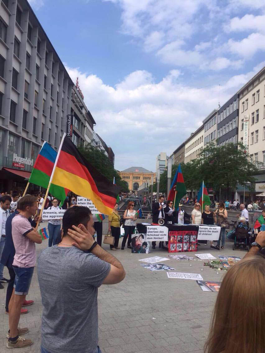 Hannover şəhərində fəaliyyət göstərən Azərbaycan Dostluq Cəmiyyəti və “Xəzər” Cəmiyyətini birgə təşkilatçılığı ilə şəhərin mərkəzində baş tutan etiraz mitinqində Ermənistanın işğalçılıq siyasətini pisləyən şüarlar səsləndirilib. Aksiyada çıxış edənlər Azərbaycan torpaqlarının işğaldan azad olunmasını, beynəlxalq ictimaiyyətin Ermənistanın təcavüzkar siyasətinə son qoyulması üçün qəti tədbirlər görməsini tələb ediblər.