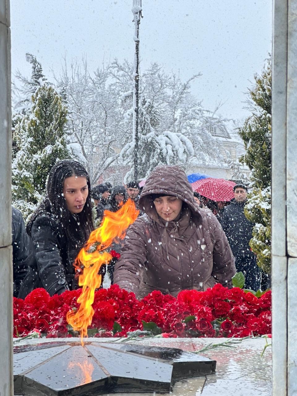 Ziyarət zamanı abidə önünə gül dəstələri düzülüb, 20 Yanvar faciəsi qurbanlarının əziz xatirəsi dərin hüzn və ehtiramla yad olunub.