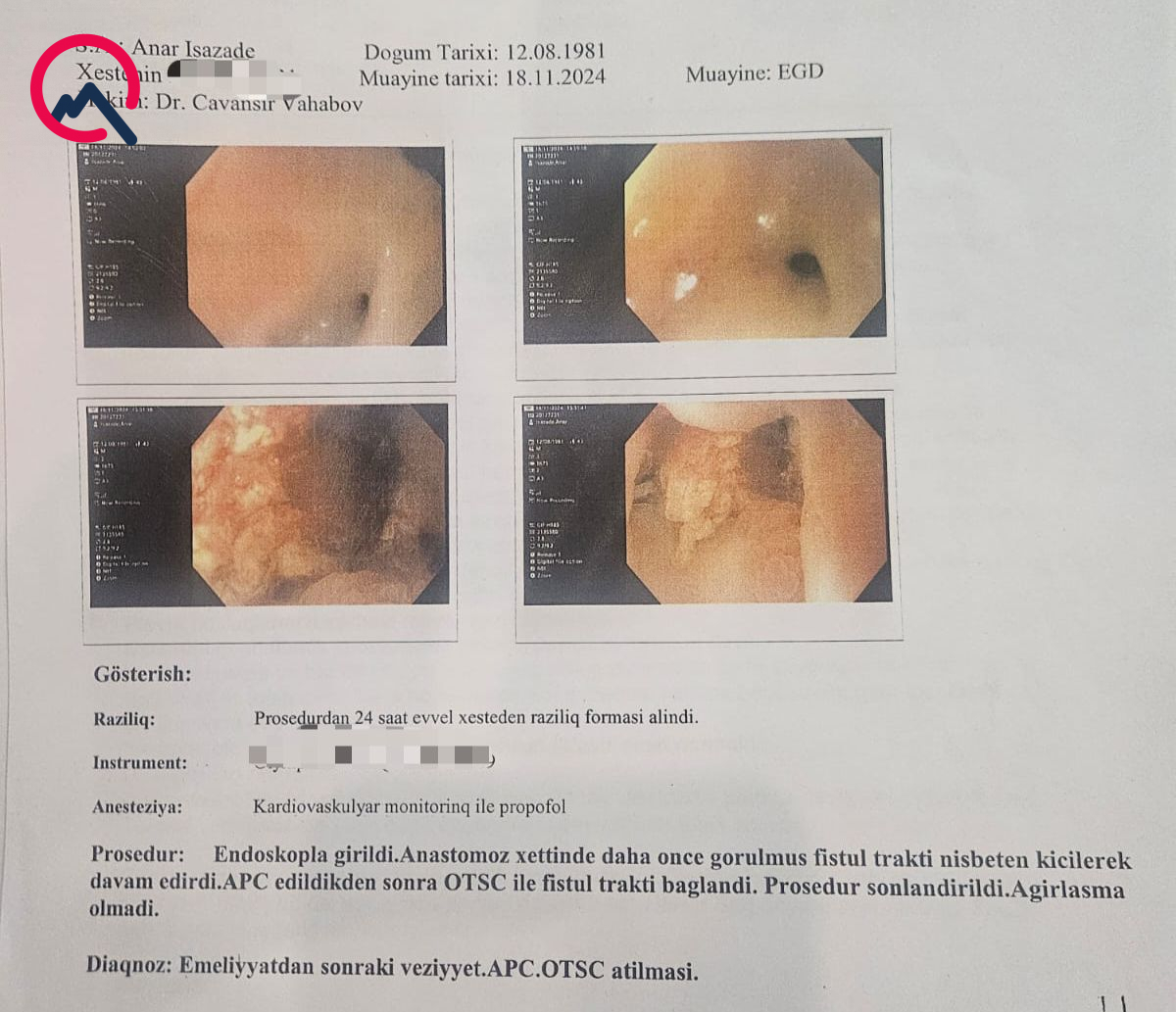 Əgər mədədə deşik olsaydı, əməliyyatdan sonra yaxın bir həftə ərzində sağalmazdı, hətta həyatını itirərdi. Biz onun problemini daim nəzarətdə saxlamışıq. Mədəsinə stent qoyduq, sağaltdıq. Lakin o, qida vərdişlərini düzəltmədiyi üçün davamlı olaraq fərqli problemləri yaranırdı. Dəfələrlə fərqli klinikalara yönləndirdim. Köməklik göstərdik, ən son onu başqa bir həkimə yönləndirdim və problemi həll oldu. Bundan sonra isə o, pulunun geri qaytımasını tələb etdi. Hansı əsasla?!