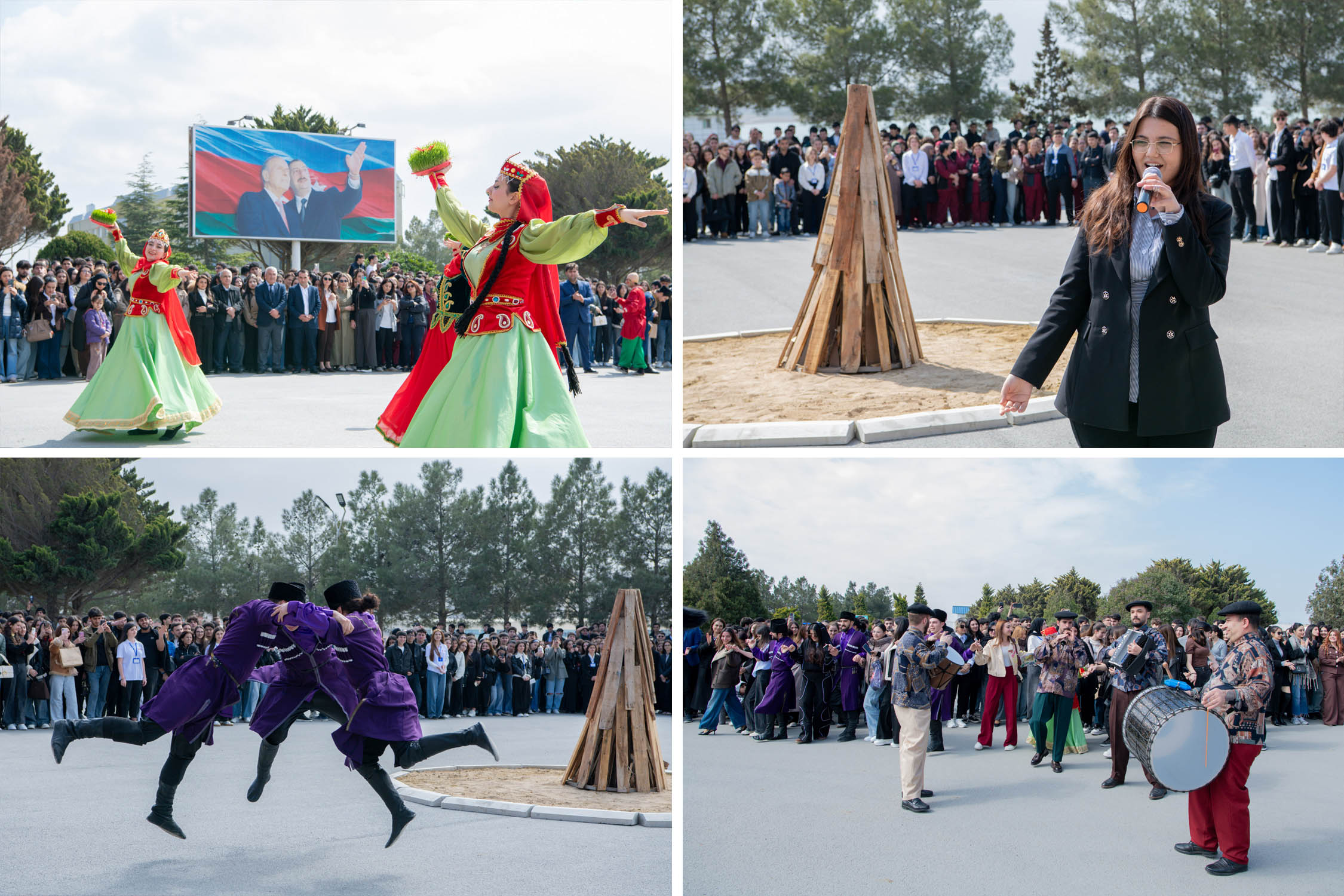 Sonra rektor Novruzun rəmzi olan bayram tonqalını alovlandırıb. Universitetin kollektivi və tələbələr bayram tonqalı ətrafında yallı gediblar.