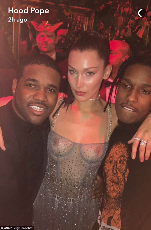 Bella gecəyə Kendall Jenner və Eva Herzigova ilə birgə qatılıb.