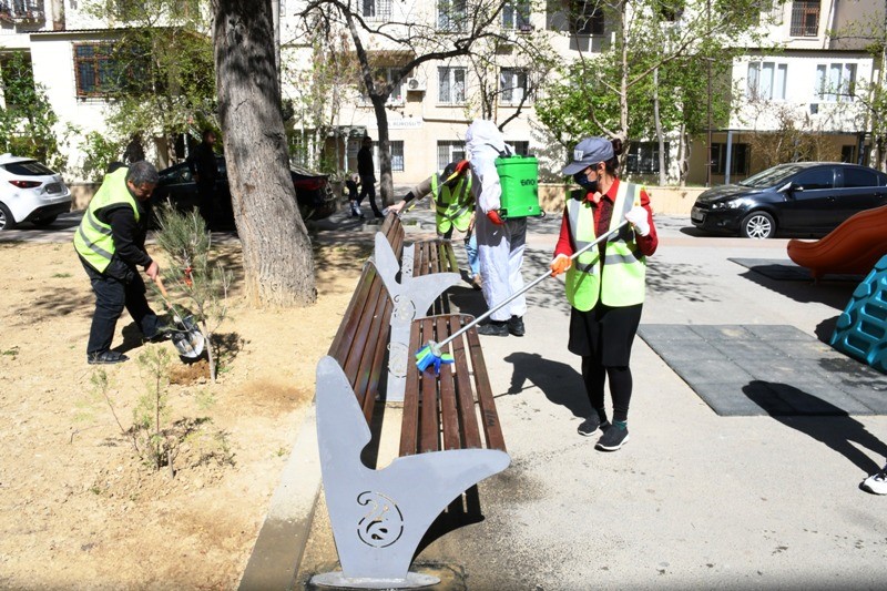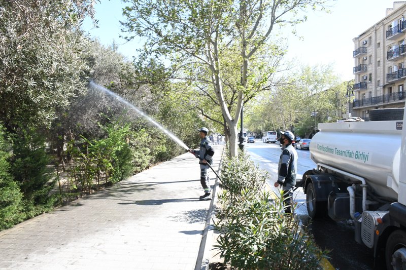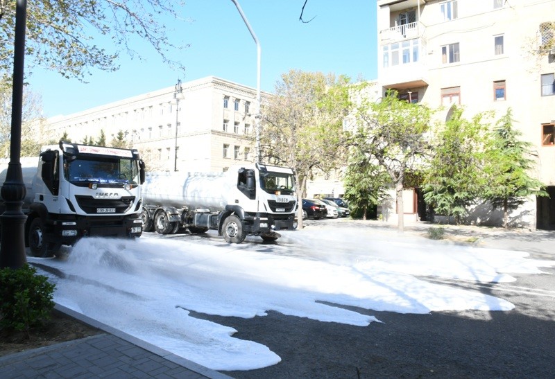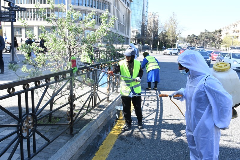 BŞİH-nin kommunal təsərrüfat xidmətlərinin texnikası əsas küçə və prospektlərin yuyucu maddələrlə yuyulmasını aparıb, əməkdaşlar tərəfindən balansda olan yaşayış binalarında, həyət və yaşayış məhəllələrində, məişət tullantılarının atıldığı konteyner meydançalarının ətrafında əlavə təmizlik işləri görülüb.