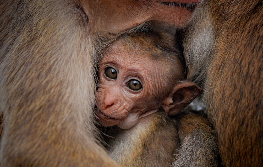 Şri Lankanın Dambulla şəhərində ana ilə körpə makaka