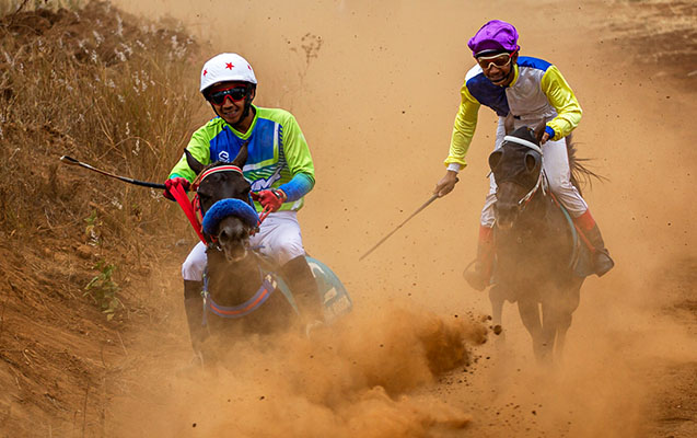 İndoneziyanın Tanjungsari şəhərində at yarışı