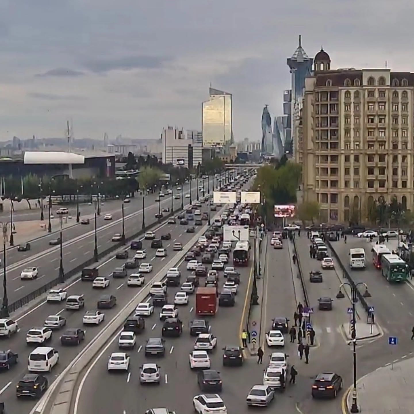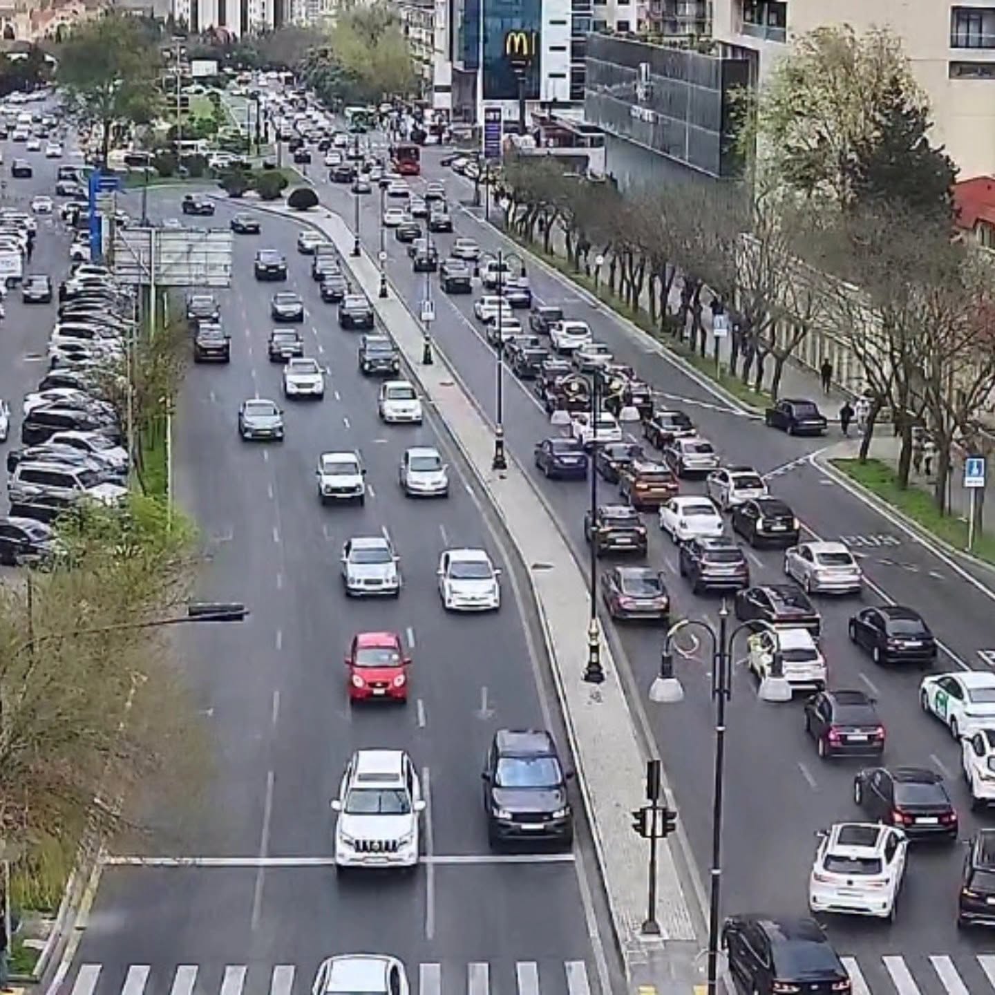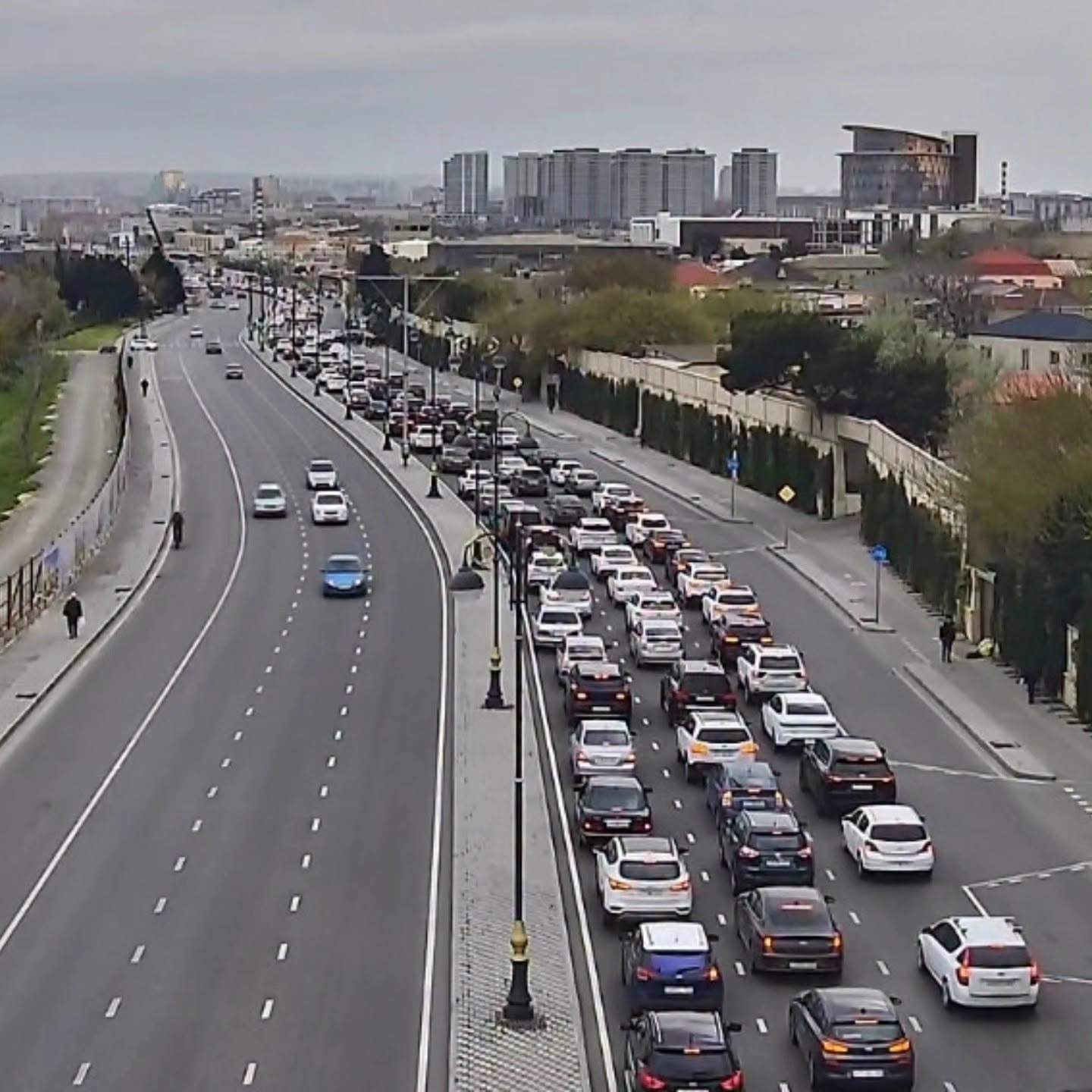 9. Ziya Bünyadov prospekti, Müzəffər Nərimanov küçəsi ilə kəsişmədən “20 Yanvar” metro stansiyası istiqamətində sıxlıq müşahidə olunur.