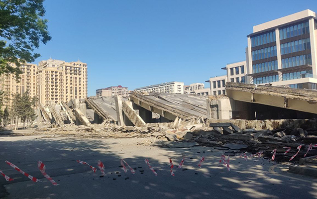 Fotodan aydın olur ki, söküntü işləri sürətlə aparılır. Artıq bu gündən körpünün dəmir-beton konstruksiyalarının da sökülməsinə başlanılıb.