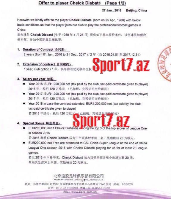 "Beijinq Enterprises”in Reynaldo sevdası baş tutmadıqdan sonra, onlar Fransa "Bordo”suna müraciət ediblər. Alternativ variant kimi, eyni şərtlərlə fransızların qolçusu Şeyx Diabateyə təklif irəli sürülüb. Ancaq "Bordo” futbolçunu satmaqdan imtina edib.