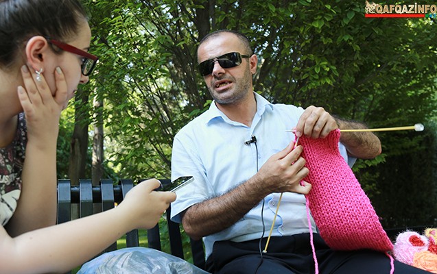 “Bacılarım toxumağı yaxşı bacarırdı. Mənə də maraqlı gəldiyi üçün 11 yaşımda onlardan öyrəndim və o gündən indiyə qədər toxuyuram. Əvvəl maraq üçün öyrəndiyim bu peşə indi kiməsə əl açıb dilənməməyimin yeganə səbəbidir. Çörək pulum, ev kirayəsi, bir sözlə bütün qazancım bu yolla çıxır. Bəzilərinə bu iş gülünc görünür. Kişi də nəsə toxuyar? Daha soruşmurlar kı, kişi əlini açıb kimdənsə nəsə dilənə bilər? Şəxsən mən özümə sığışdırmaram. Gül, jaket, jilet toxuyub halal pulumu qazanıram. Nizami Gəncəvi demiş, başqa süfrənin pələngi olmaqdansa, öz süfrənin pişiyi olmaq yaxşıdır. İnsanlar yaxınlaşanda anlayıram ki, nəsə almaq üçün yaxınlaşır, ya məsxərəyə qoymaq üçün. Bayaq metroda da bir az əsəbiləşdim. Bəlkə, ona görə belə sərt danışıram. İstəməzdim, məni zəhər tuluğu kimi biləsiz, nəsə bu gün ağır gündür”.