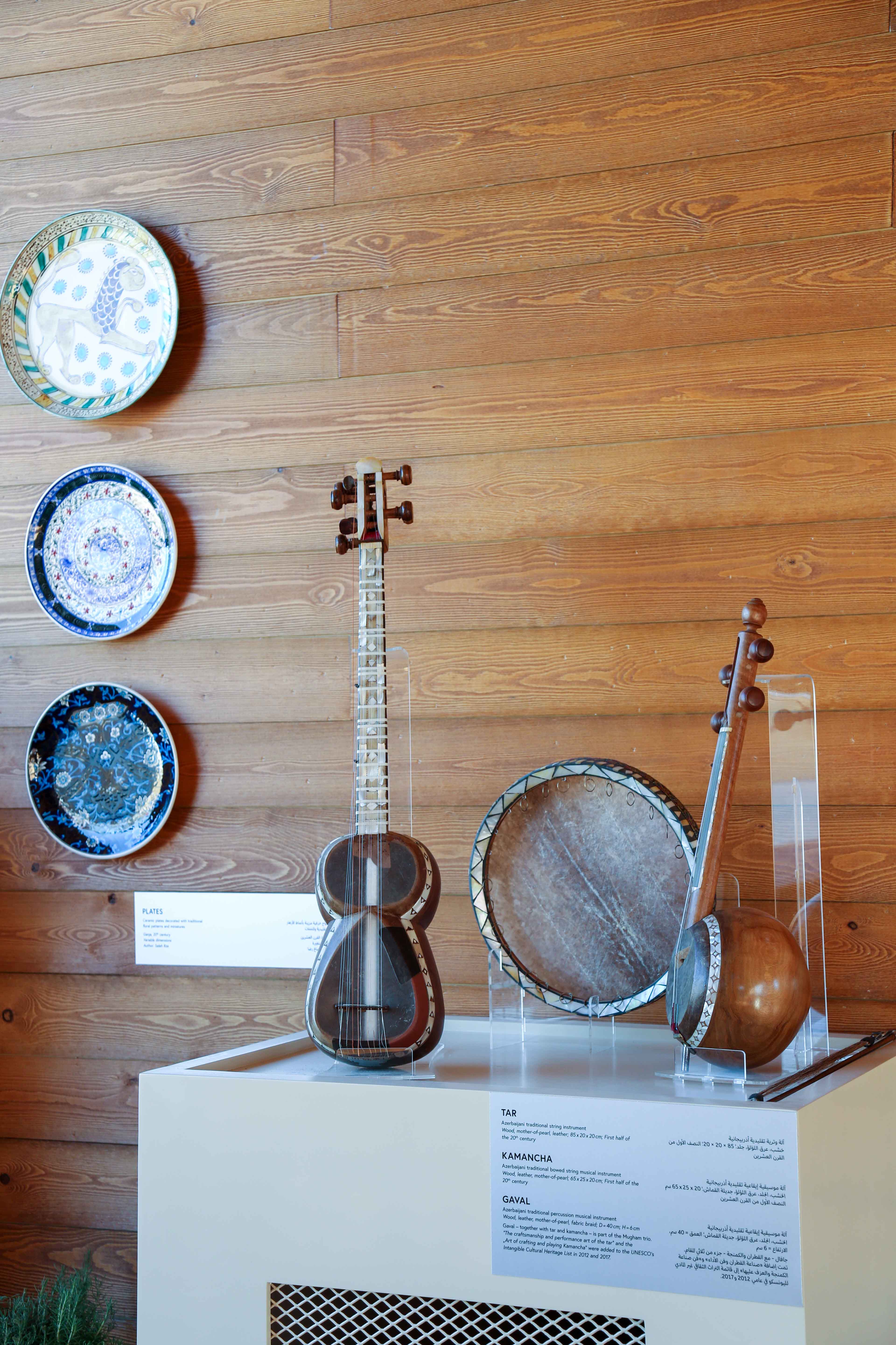 Pavilyonda həmçinin Azərbaycan mədəniyyətinə dair eksponat və məlumatlar yer alıb. Burada xalçaçılıq, misgərlik, şəbəkə kimi xalq sənətkarlığı, milli geyimlər, eləcə də muğam triosu nümayiş olunur.