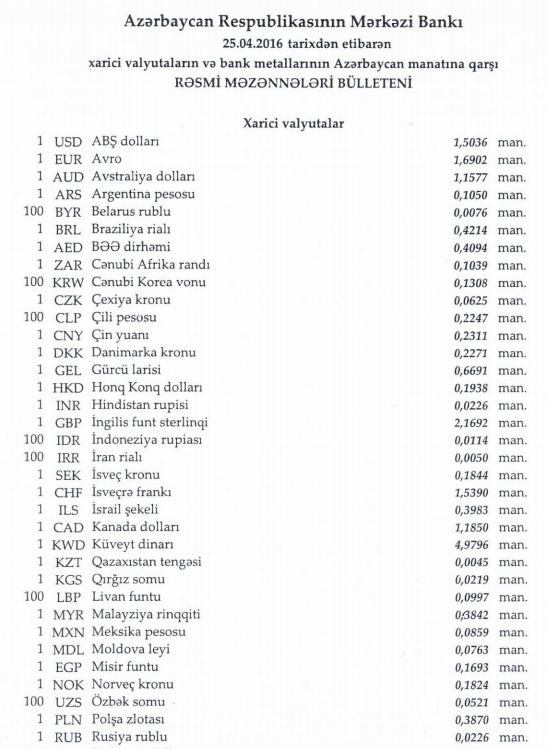 Azərbaycanda xarici valyutaların bu günə olan məzənnəsi açıqlanıb.