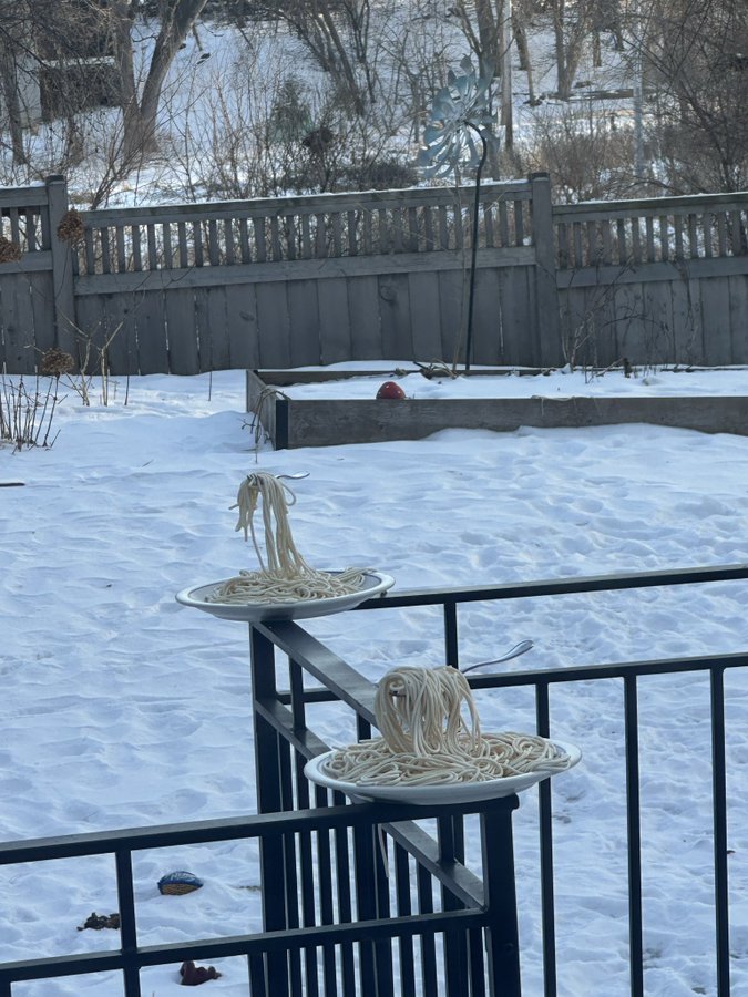“Bu səhər Minneapolisdə temperatur - 29,4°C-yə düşdü, amma hiss edilən temperatur - 42 idi! Əlbəttə, mən spagetti ilə eksperiment etməli idim”, - MakDermed yazıb.