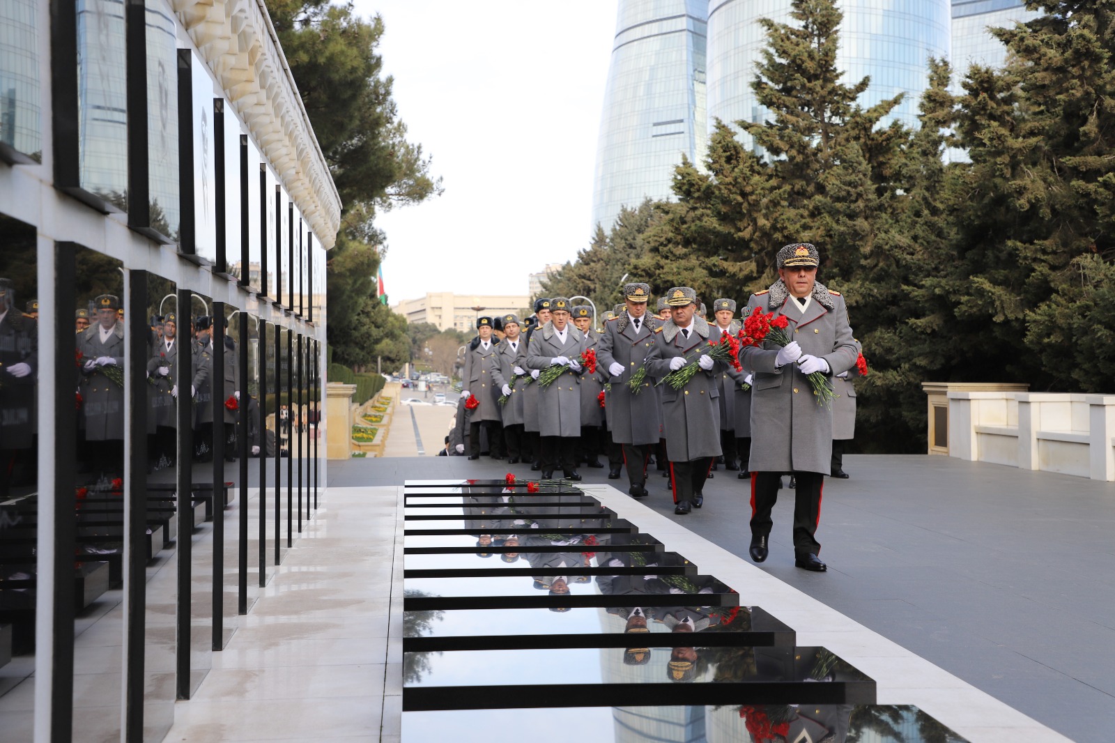 Daha sonra Şəhidlər xiyabanında Azərbaycanın müstəqilliyi və ərazi bütövlüyü uğrunda canlarından keçmiş Vətən övladlarının unudulmaz xatirəsi yad edilib, “Əbədi məşəl” abidə kompleksinin önünə əklil qoyulub.