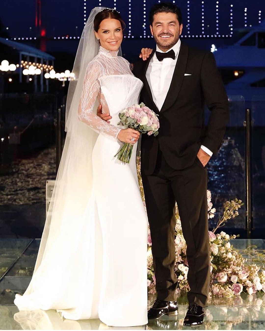 “Qafqazinfo” xəbər verir ki, cütlüyün nikahı Çırağan sarayında baş tutub. Ebrunun gəlinliyini dizayner Cengiz Abazoğlu hazırlayıb.