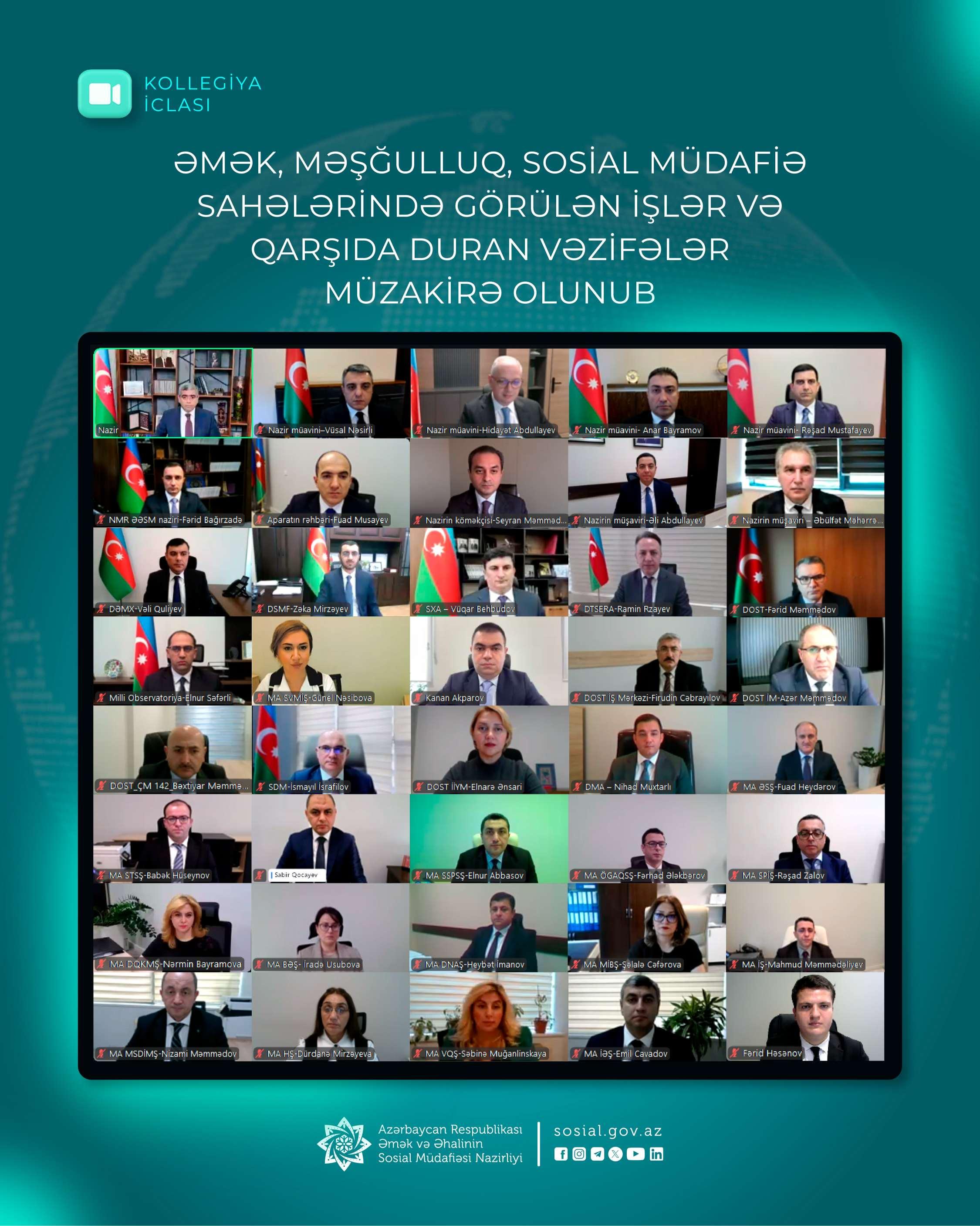 “Qafqazinfo” xəbər verir ki, bu barədə Əmək və Əhalinin Sosial Müdafiəsi Nazirliyində keçirilən növbəti kollegiya iclasında bildirilib.