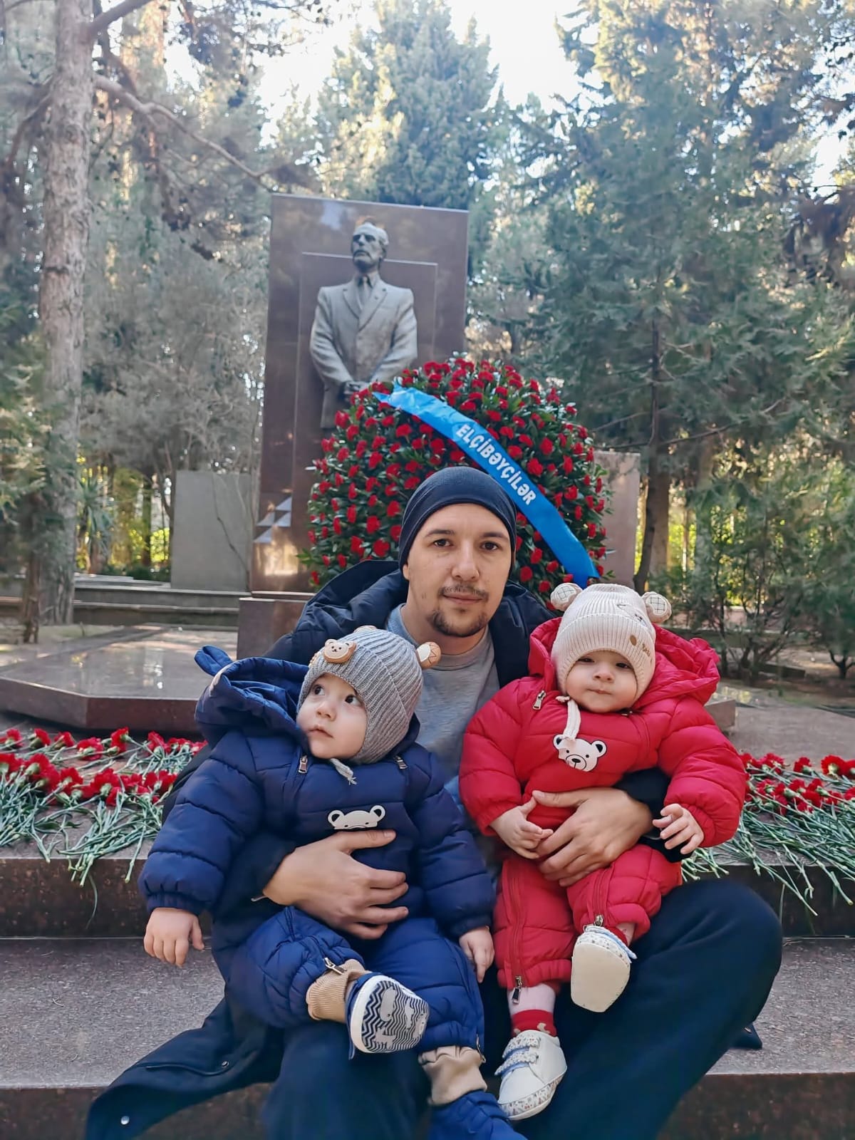 Azərbaycanın mərhum sabiq prezidenti Əbülfəz Elçibəyin oğlu Ərturqut Əliyev əkizləri ilə birgə atasının məzarını ziyarət edib.